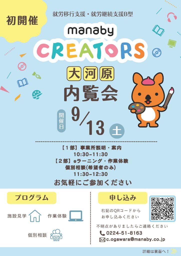 【宮城】9/13開催!manaby CREATORS 大河原 内覧会