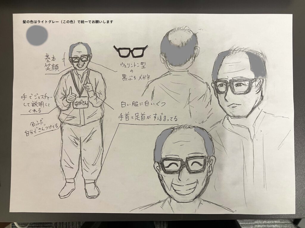 絵コンテ作成と一部シーンの清書を担当したTOSHIさんは、「芳賀さんの魅力が伝わるように、似ていると喜んでもらえるように、特に力を入れて描きました。実在する人物を描くのはとても楽しくて、ウキウキしました」と語ります。