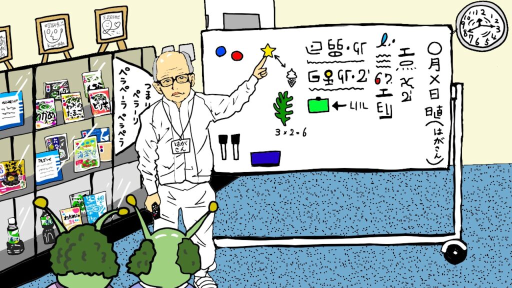 社内からも好意的な声が相次ぎ、「芳賀さんの特徴がよく描かれていて面白かった」「将来は宇宙や陸上でわかめが養殖される物語に夢が膨らんだ」「工場見学にきてくれた子供たちにも見せたい」といった感想が寄せられました。冒頭に登場した“ザック星人”には「なんだ、このバケモノは(笑)!」と驚きつつも、「かわいらしくて癒された」といった反応も多く、その豊かな表情が社員の心をつかんだようです。